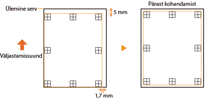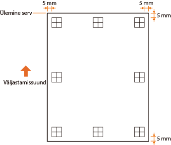 . Määrake nende märkide põhjal reguleerimise suund ja kaugus. Tavalise printimiskoha korral prinditakse kõik märgid 5 mm kaugusele paberi lähimast servast.