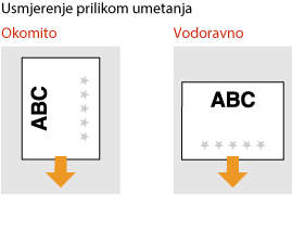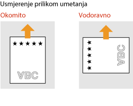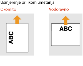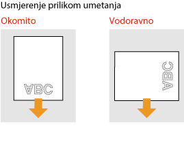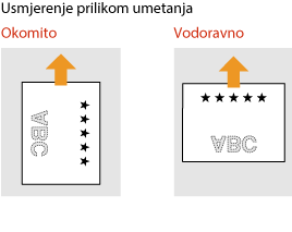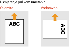 Pri korištenju papira na kojem je već otisnut logotip pazite na usmjerenje papira prilikom umetanja. Pravilno umetnite papir kako bi se ispis obavio s odgovarajuće strane papira s logotipom.