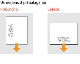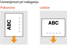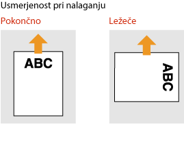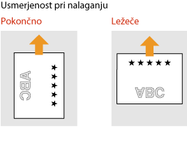 Če uporabljate potiskani papir z logotipom, pri nalaganju pazite na pravilno smer papirja. Papir naložite pravilno, da se bo natisnil na tisto stran, na kateri je logotip.