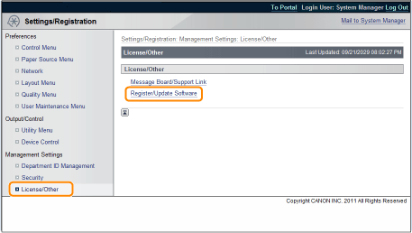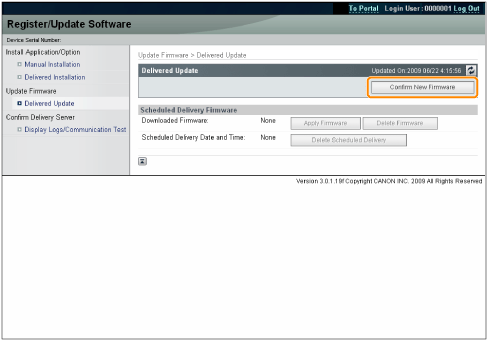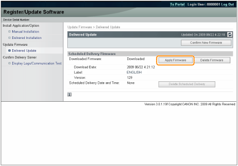 Estimated time required to apply firmwareThe time required to apply the downloaded firmware is approximately 20 minutes. This operation may take more time depending on the system configuration and network environment of your printer.
