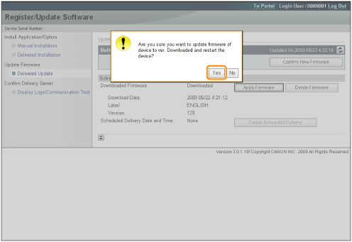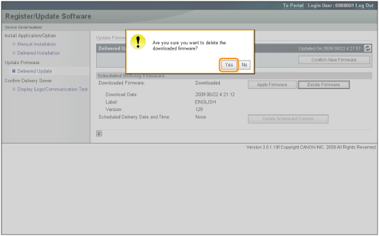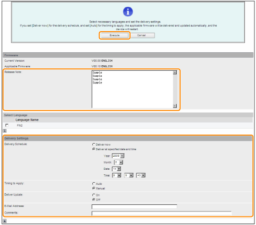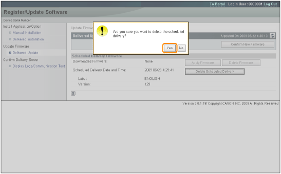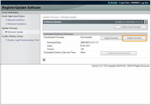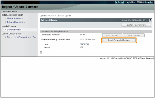 The new firmware is downloaded. ![]() When the Delivery Schedule is set to [Deliver at specified date and time]