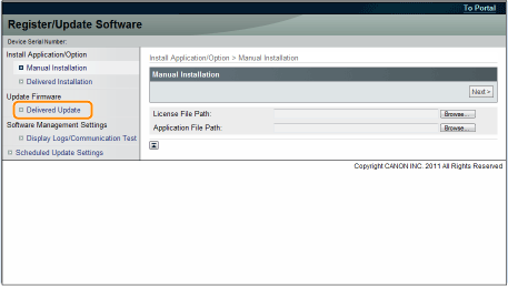 The firmware is applied after the new firmware is downloaded from the delivery server. When the application is completed, the printer automatically restarts. ![]() When the Delivery Schedule is set to [Deliver now] and the Timing to Apply is set to [Manual]