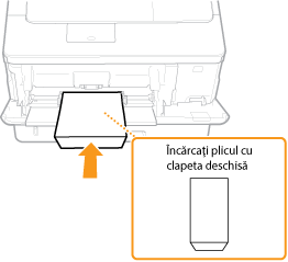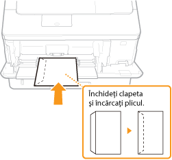 Această secţiune descrie cum să încărcaţi plicuri în orientarea pe care o doriţi, precum şi procedura pe care trebuie să o definitivaţi înainte de a încărca plicuri sau cărţi poştale. Pentru procedura generală de încărcare a plicurilor sau cărţilor poştale în tava multifuncţională, consultaţi Încărcarea hârtiei în tava multifuncţională.