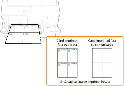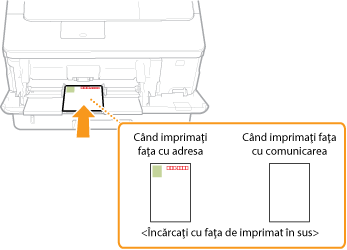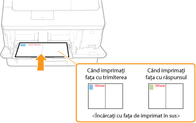 Încărcaţi cartea poştală cu faţa de imprimat în sus şi cu muchia scurtă către aparat când cartea poştală este de tipul standard sau 4 pe 1 sau cu muchia lungă către aparat când cartea poştală este de tipul Reply.