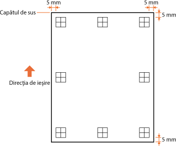 . Pe baza acestor marcaje stabiliţi direcţia şi distanţa care urmează să fie reglate. Când poziţia de imprimare este cea obişnuită, toate marcajele sunt imprimate într-o poziţie de 5 mm faţă de colţul de hârtie cel mai apropiat.