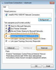 Označte zaškrtávací rámček [Protokol TCP/IPv4 (Internet Protocol Version 4)] alebo [Internetový protokol] a kliknite na položku [Vlastnosti].