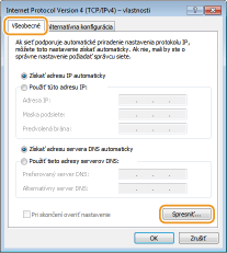 Zo zoznamu vyberte „Názov pracovnej skupiny“, „Názov servera“ a „Názov tlačiarne“, ktoré boli v tomto poradí uvedené v nastaveniach SMB protokolu. Konfigurovanie SMB