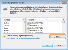 Ak chcete nastaviť tlačový protokol na IPP alebo IPPS, nainštalujte ovládač tlačiarne pomocou postupu uvedeného nižšie, ktorý je vhodný pre operačný systém vášho počítača. Ovládač tlačiarne sa nachádza na disku User Software CD-ROM/DVD-ROM (Disk CD-ROM/DVD-ROM s používateľským softvérom), ktorý sa dodáva so zariadením. Vložte disk User Software CD-ROM/DVD-ROM (Disk CD-ROM/DVD-ROM s používateľským softvérom) do mechaniky v počítači ešte pred začatím postupu.
