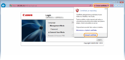 Uistite sa, že je zobrazená „https://<IP adresa zariadenia> alebo <názov hostiteľa zariadenia>.<názov domény>/“ a kliknite na položku [Pridať]