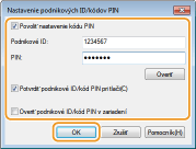 Kliknutím overte správnosť zadaného ID a PIN kódu. Táto funkcia nie je dostupná, ak sú zariadenie a počítač pripojené pomocou USB alebo WSD (Web Services on Devices) port.