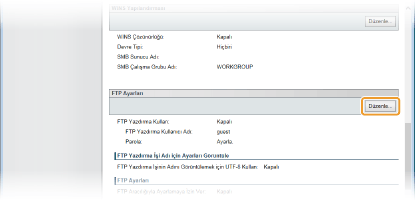 [FTP Ayarları] içinde [Düzenle] öğesini tıklatın.
