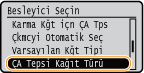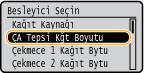 tuşlarını kullanarak <ÇA Tepsi Kğt Boyutu> seçeneğini belirleyin ve
