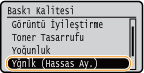 Eğer <Toner Tasarrufu> öğesi <Açık> olarak ayarlanmışsa, bu ayarlama işlevini kullanamazsınız. Toner Tasarrufu