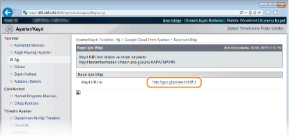 [Kayıt URL'si] için görüntülenen URL bağlantısını tıklatın.