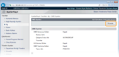 SMB yalnızca, isteğe bağlı SD kart makineye takılı iken etkinleştirilir.