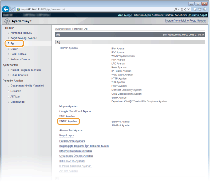 [SNMP Ayarları] öğesini tıklatın.