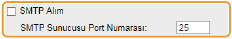 E-Posta Yazdırma işlevini SMTP protokolünü kullanarak etkinleştirmek için onay kutusunu seçin. Bu ayarı ayrıca, işletim panelinin ayar menüsünde <SMTP RX> öğesini kullanarak da belirtebilirsiniz (
