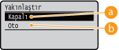Resimlerin büyütülmesini/küçültülmesini etkinleştirir veya devre dışı bırakır. Çıktılar, orijinalinin en boy oranı korunarak büyütülür veya küçültülür. Ayarı seçmek için,