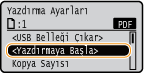 <Yazdırmaya Başla>seçeneğini belirleyin ve tuşuna basın.