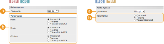 [Çözünürlük] ayarından daha yüksek tanımlı yazdırma uygular ama doku istikrarında ondan biraz geridedir. Bu yazdırma modu; karakterler, ince çizgiler ve CAD verileri gibi verilerin kenarlarını keskin şekilde yazdırmak için uygundur.