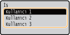Eğer iki veya daha fazla kullanıcıya ait güvenli belgeler SD kart içerisinde tutuluyorsa, yukarıda gösterilen ekrandan önce aşağıda gösterilen gibi bir kullanıcı seçim ekranı görüntülenir. Kullanıcı adınızı seçin ve