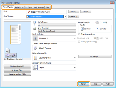Yazdırma ayarlarını gerektiği gibi belirtin ve [Tamam] öğesine tıklayın.