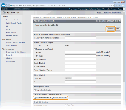 [Mevcut Sistem Yöneticisi Parolası] Alanına Sistem Yöneticisi parolasını girin.