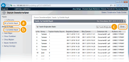 Ayrıntılı bilgileri görüntülemek için duraklatılan belgelerde ve güvenli belgelerde [İş No.] öğesini tıklatın. Yazdırılan belgenin kullanıcı adını ve sayfa sayısını denetleyebilirsiniz.