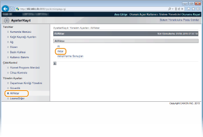 Portal sayfasındaki [Ayarlar/Kayıt] öğesiyle kurulabilir olan birimlerin ayar verilerini dışa aktarmak için, bu birimlere karşılık gelen onay kutularını işaretleyin.