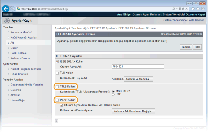[TTLS Kullan] veya [PEAP Kullan] onay kutusunu seçin.