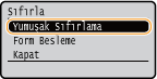 ( ) öğesine bastığınızda, Sıfırlama menüsü görüntülenir. |