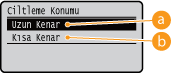 Önceden yazdırılmış logo bulunan kağıt kullanıldığındaEğer son sayfa, <Alternatif Yöntem> öğesi <Açık> olarak ayarlanmışken 1 taraflı yazdırma modunda işleniyorsa, son sayfanın yönü veya yazdırma tarafı diğer sayfalarınki ile eşleşmeyebilir. Böylesi bir durumda, <Alternatif Yöntem> öğesini <Kapalı> olacak biçimde ayarlayın.