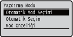 Eğer tüm yazdırma modları <Kapalı> olarak ayarlanmışsa, makine, <Mod Önceliği> için belirtilmiş yazdırma modunda işletilir.