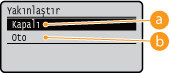 Eğer <Açık> öğesini seçerseniz, orijinaline bağlı olarak resmin bazı kısımları kağıdın kenar bölgesinde eksik yazdırılabilir ya da kağıt kısmen lekelenebilir.