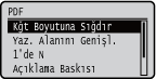 Eğer <Açık> öğesini seçerseniz, orijinaline bağlı olarak resmin bazı kısımları kağıdın kenar bölgesinde eksik yazdırılabilir ya da kağıt kısmen lekelenebilir.