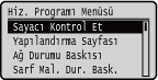 Yazdırılan toplam sayfa sayısını görüntüleyebilir ve dâhili sistem bilgilerini yazdırabilirsiniz. İşletim panelindeki  (  ) öğesine bastığınızda, Yardımcı yazılım menüsü görüntülenir. Aşağıda açıklanmış ayarları, makine çevrimdışı iken belirtebilirsiniz.