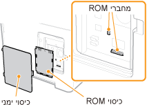 סעיף זה מתאר כיצד להתקין את ערכה להדפסת ברקודים או את PCL סט גופנים בינלאומי במכשיר. ה-ROM שבו נעשה שימוש מחובר למחברי ROM שנמצאים בתוך המכסה הימני של המכשיר.