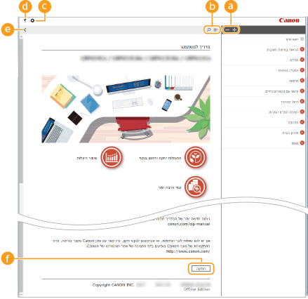לחץ כדי להציג מידע המסביר כיצד להציג את מדריך למשתמש, כיצד לבצע חיפוש וכן מידע נוסף.