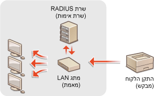 שימוש בלוח ההפעלהבאפשרותך גם להפעיל או להשבית את אימות IEEE 802,1X מתפריט ההגדרות של לוח ההפעלה. IEEE802.1X