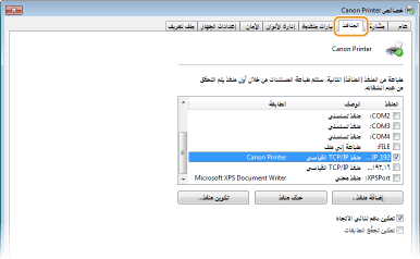 تحقق من تحديد المنفذ الصحيح في علامة التبويب [المنافذ].