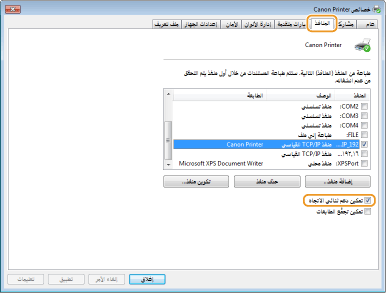 في علامة التبويب [المنافذ]، تأكد من اختيار مربع الاختيار [تمكين دعم ثنائي الاتجاه].