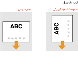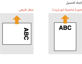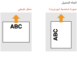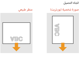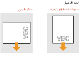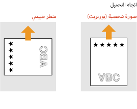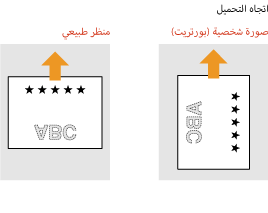 عند استخدم ورق تمت الطباعة عليه قبل ذلك مع وجود شعار، انتبه جيدًا إلى اتجاه الورق عند التحميل. قم بتحميل الورق بشكل صحيح حتى تتم الطباعة على الجانب الصحيح من الورق الذي به شعار.