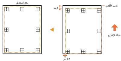 . حدد الاتجاه والمسافة بناءً على هذه العلامات. عندما يكون موضع الطباعة طبيعيًا، تتم طباعة جميع العلامات في موضع ٥ ملم من الحافة الأقرب بالورق.