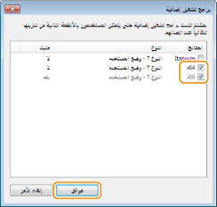 حدد مربع الاختيار لهندسة البت التي تعمل بها أجهزة الكمبيوتر الأخرى، ثم انقر فوق [موافق].