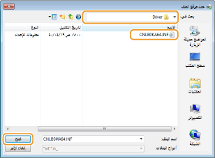 حدد المجلد الذي يحتوي على برامج التشغيل الإضافية، وحدد ملف INF، ثم انقر فوق [فتح].