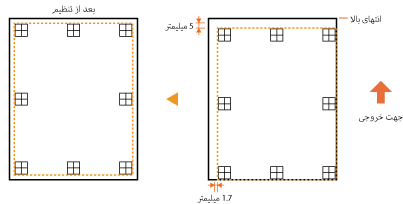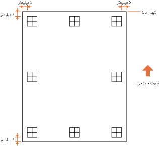 چاپ میشود. جهت و فاصله را برای تنظیم بر اساس آن علامت ها تعیین کنید. هنگامی که محل چاپ طبیعی باشد، تمام علامتها در موقعیت 5 میلی متر از نزدیکترین لبه کاغذ چاپ میشود.