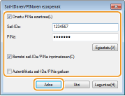 Sakatu aukera hau ID eta PIN zuzenak sartu direla egiaztatzeko. Funtzio hau ez da erabilgarri egongo makina eta ordenagailua USB edo WSD (web zerbitzuak gailuetan) ataka baten bidez konektatuta badaude.