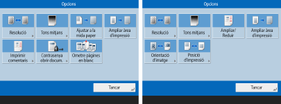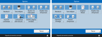Pantalla d'opcions d'impressió