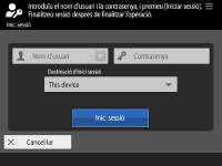 per tancar la sessió.![]() Podeu especificar si voleu desar a la memòria cau les contrasenyes introduïdes durant l'inici de sessió. <Prohibir desar a mem. cau contrasenya d'autenticació> Si establiu <Mostrar botó per canviar contras. al menú Opcions> en <On>, la contrasenya es pot canviar des de a la part superior dreta de la pantalla d'inici de sessió. <Mostrar botó per canviar contras. al menú Opcions>Podeu especificar si voleu desar o eliminar la memòria cau d'usuaris d'inici de sessió. <Nombre memòries cau per a usuaris d'inici de sessió> |