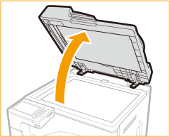 Quan tanqueu l'alimentador/tapa de còpia, assegureu-vos de no exposar els ulls a la llum que s'emet a través del vidre de còpia. |